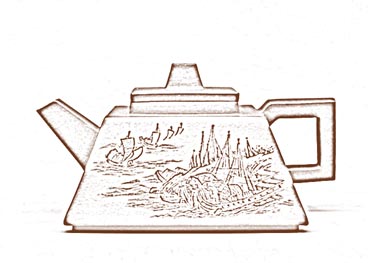 一把好的方形壺表現在線條上要又挺又直,不可偏扭與含糊。以直線與平面為展現精神的主軸,充分展現一股堅毅挺拔的氣能。在方的骨架中轉出曲折的線條與平面,靈活運用技巧,添加一些其他元素,讓剛毅的屬性添入婉轉柔順,這樣的線條會讓整把壺充滿流動感。