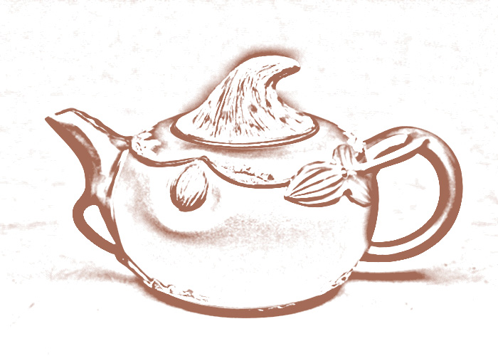 初冬季節,是荸薺收獲的時候,黑褐色的荸薺,是孩子們喜食難忘的果實,它附著泥土,憨憨的外形,是那么樸素,甚至有些丑陋。然而,一旦用清水洗凈,削去外皮,袒露出的竟是晶瑩剔透、潔白如玉的果肉。那蘊涵童趣的荸薺壺,以凝重的朱紅泥料塑出壺身,給人以成熟健康的視覺。蔣蓉在造型上,不求形似,而是以藝術夸張的手法,將荸薺的細微之處,以逼真的精雕彰顯出來。尤其是那荸薺芽狀的壺鈕,無疑是此壺的點睛之處,讓人望了會有種想去提一提的沖動。我們久逝的童年美好時光,就這樣被荸薺壺勾起,涌上心間。不知蔣蓉大師偏愛荸薺,是否因為那外形丑陋之果,雖出之污泥,但其內心卻是一派冰清玉潔。取荸薺之形,塑造紫砂;納清泉陽羨,滌蕩心靈塵埃。