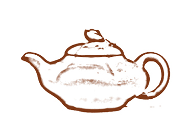 合桃壺壺身作五瓣筋囊式,等分均勻規(guī)則,線深具有張力,壺身鼓腹,囊塊圓渾飽滿,每囊與蓋嚴(yán)密相合,制作精湛。彎流作纖巧處理,愈顯精神,把從凹囊中舒展而出,兩者相得益彰,加強(qiáng)了形體的平衡感。蓋鈕捏塑成桃實(shí),小枝桃葉數(shù)片貼飾于蓋面,形態(tài)逼真,韻味古樸,倍增花貨紫砂藝術(shù)細(xì)膩的表現(xiàn)。